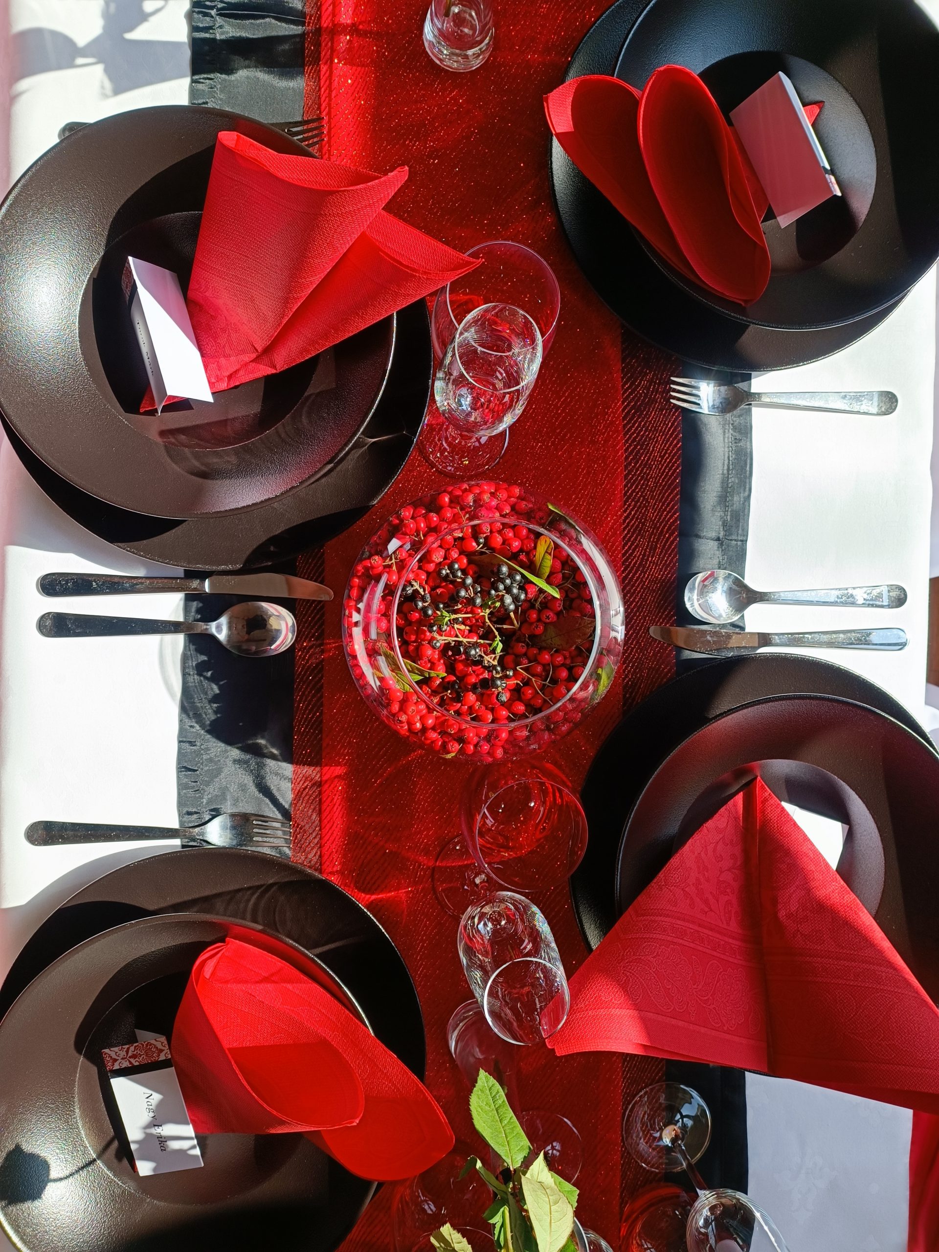 - Different styles of tablecloths – cutlery, plates, glasses, accessories, textile napkins.